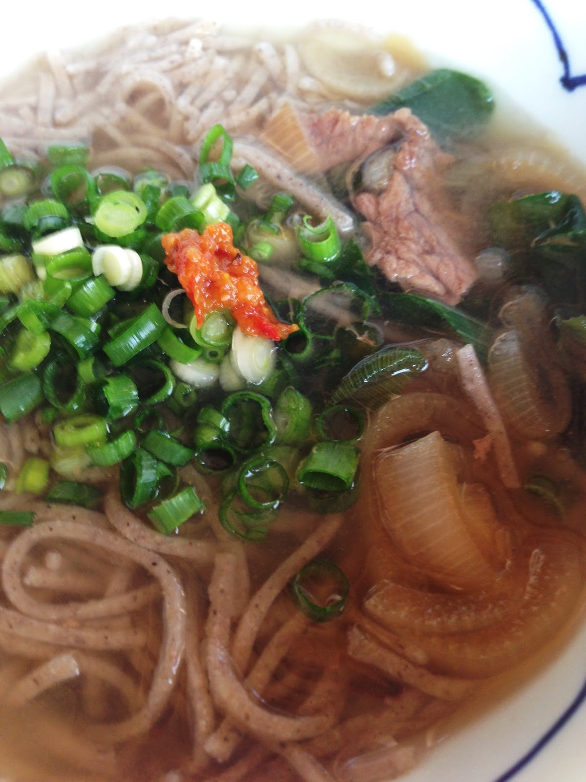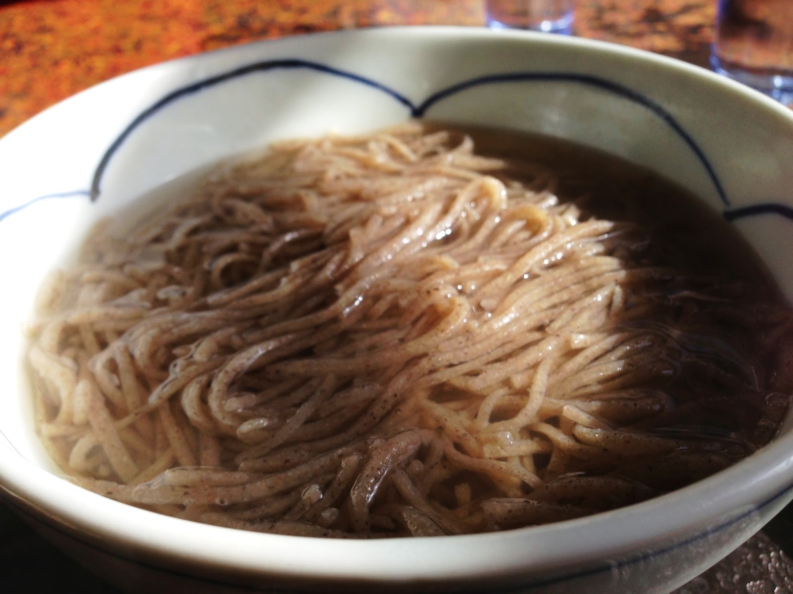 麺は、十割そばだけあって、蕎麦のボソボソ感が残ります(笑)、お汁に付けておくと麺がボロボロ壊れて、蕎麦粥みたいな感じになっていきます。十割そばはザルとかで食べるほうが喉越しわかってイイかも(笑)、そば汁はかなり薄味で蕎麦の味だけを味合うような感じです。