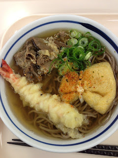 海老天、牛肉、餅巾着が入ったちょっと豪華(笑)な山田そば、食べてみる?