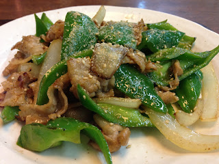 ちゃんぽんが美味しいと評判の「めし処一膳や」へ行ってきた。黒豚肉とピーマンの炒め物定食 |
