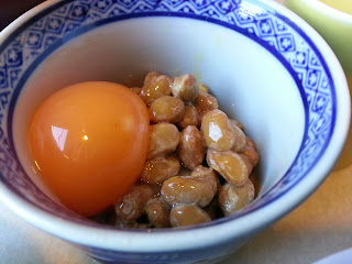 七山村の自然タマゴ(卵黄のみ)と納豆 |