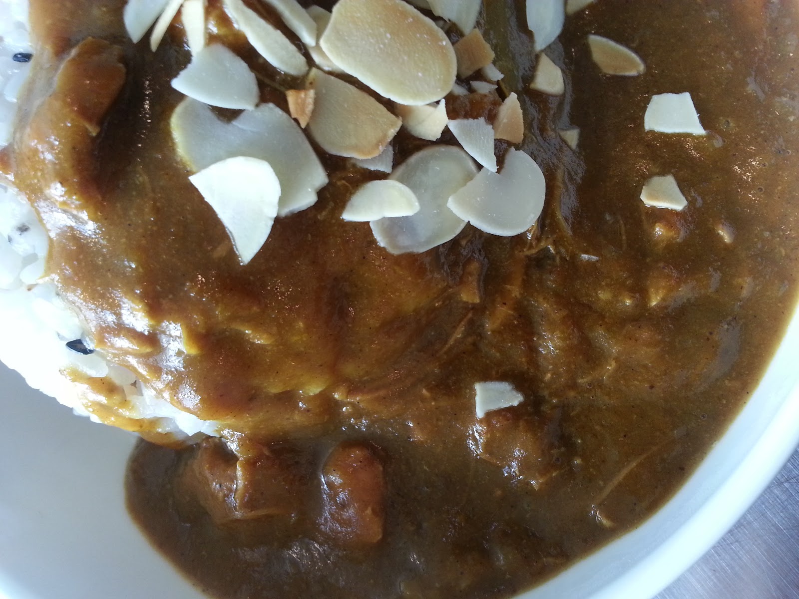 | アーモンドが乗ったチキンカレー |