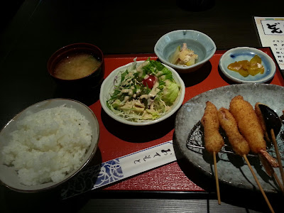 http://tabetemiru.blogspot.com/2013/03/blog-post_27.html新幹線降りたら「串カツ酒場 どん」で串カツ定食