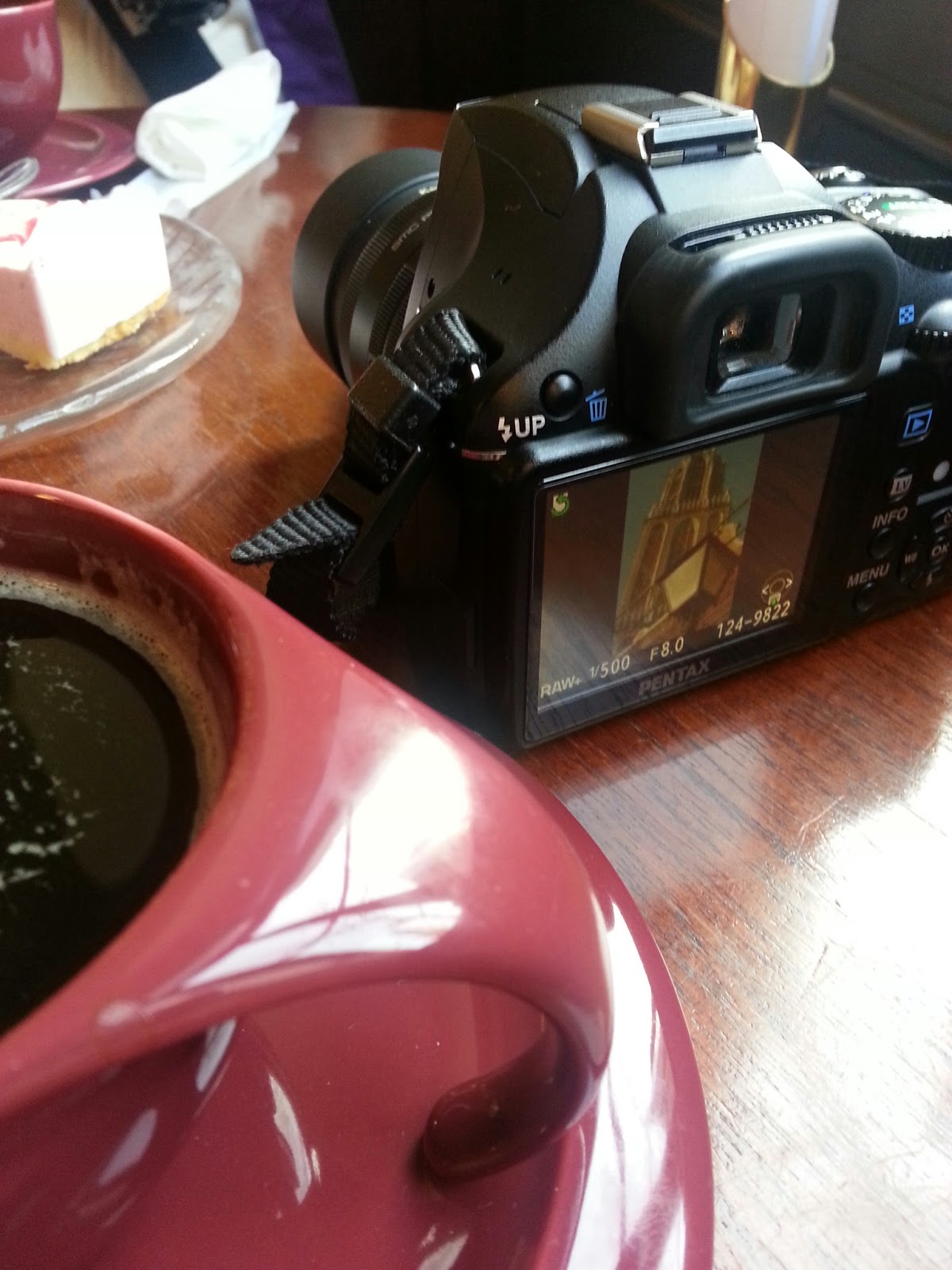 外の気温は低いけど、歩き疲れてたので、ひんやりあまおうのレアチーズケーキと珈琲を注文した。