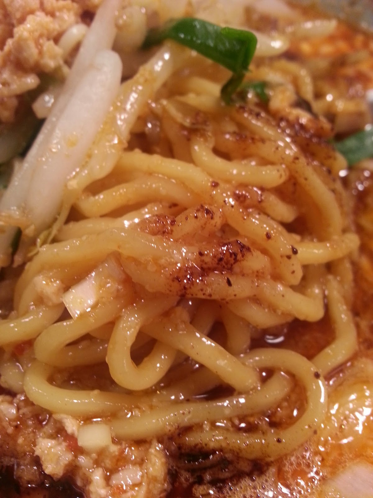 ここの担々麺は、ラー油の辛さと芝麻醤の風味、そして酸辣湯のような酸味が複雑に絡んでくる。