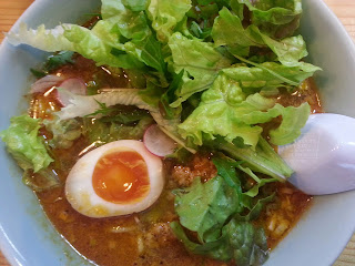 博多坦々麺は、豚骨スープベースの坦々麺で、豚骨ラーメンの辛口といった感じです。