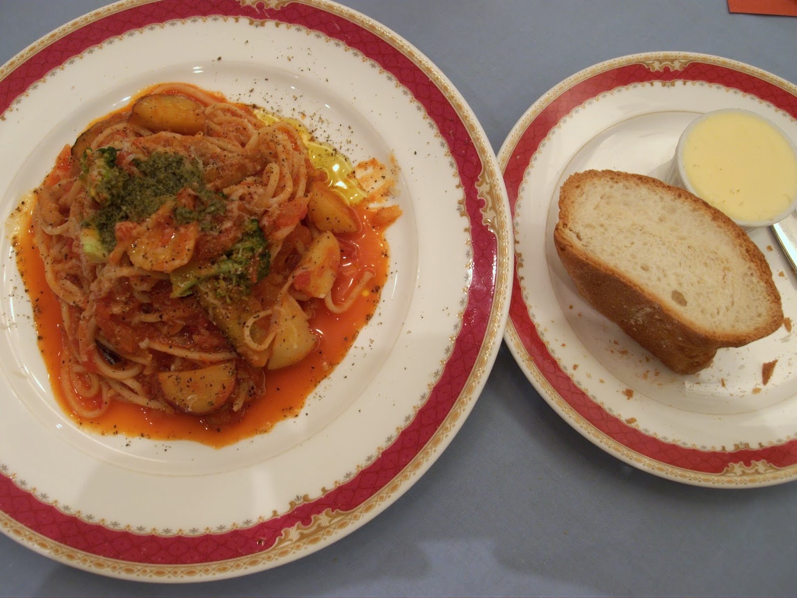 お代わり自由なので、パンだけで味わい、パスタソースに付けて味わい、お腹が満たされるまで食べて下さい。