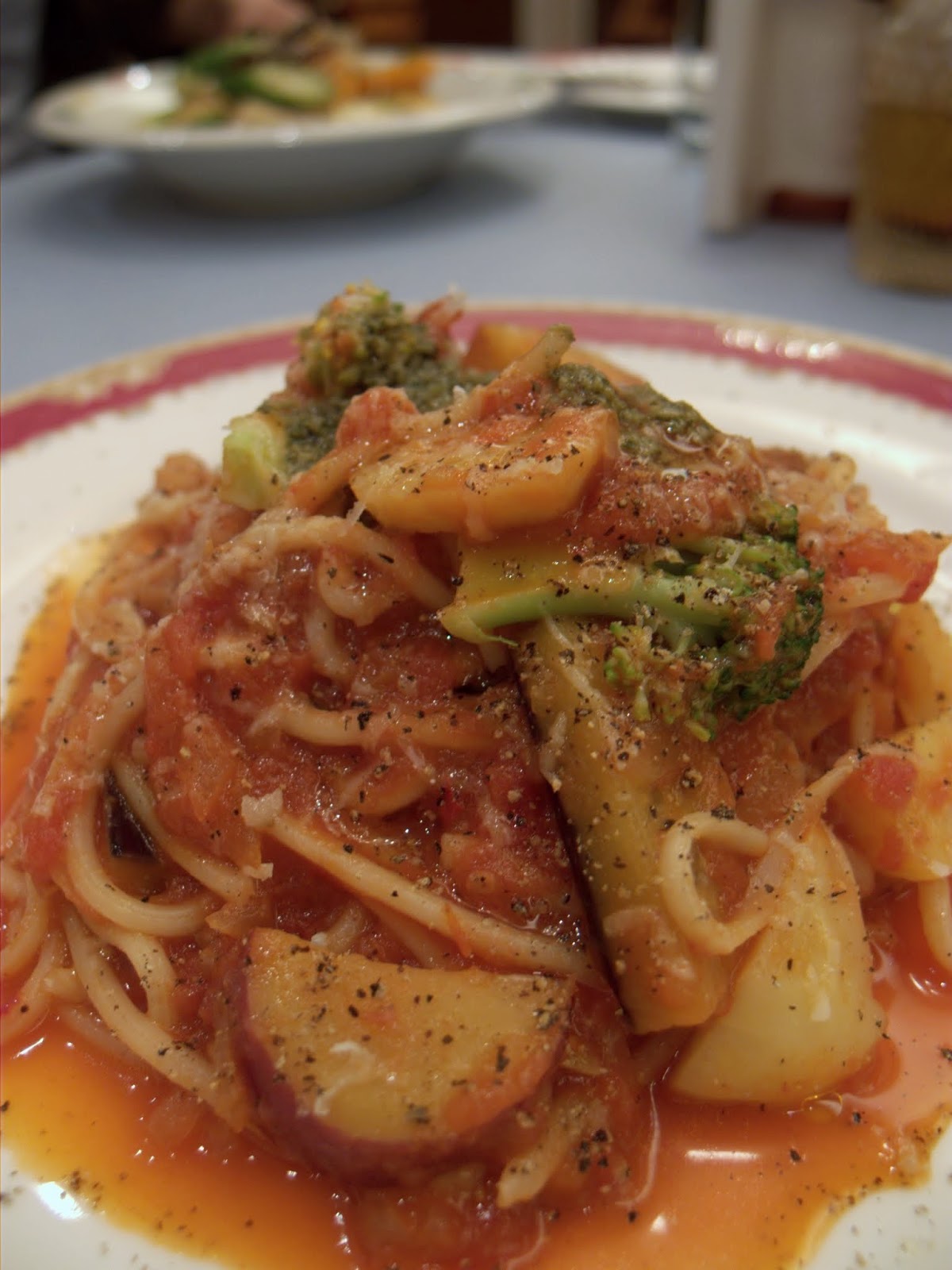自家栽培の野菜豊富な「カンパニョーラ」へ行ってきました。998円の内容は、3種類から選べるパスタとお代わり自由のパン、サラダ、デザートになっています。