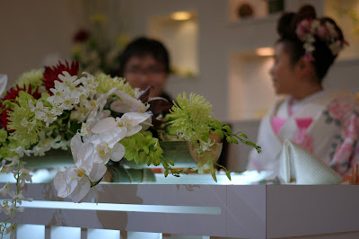 白を貴重した式場で、ホールに入ると眩しいぐらいの白でしたw