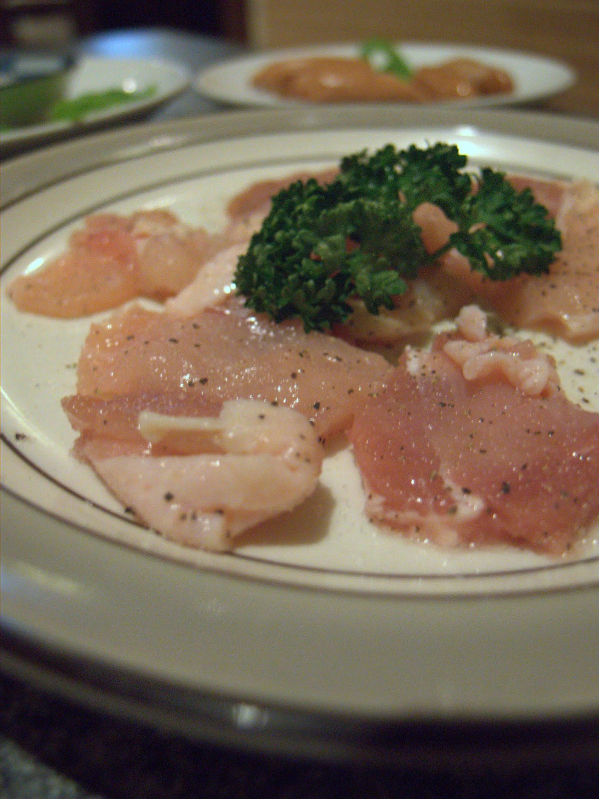 軽く火を通して食べて下さい。だそうです。 ほとんど生と同じ味、食感♪ |