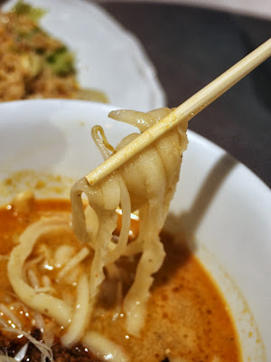 その刀削麺の担々麺、担々麺以外にも刀削麺を使った麺料理はあるのですが、やっぱり担々麺が旨い。