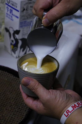 で、居合わせた(お願いが有って呼んでたw)うっちーさんに、ラテアートをお願いした。