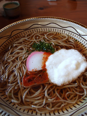 そして、ざる蕎麦と行きたいところですが、少々冷えてたので温かいお蕎麦を頂きました。山芋が入ったとろろそば、山芋は普通でしたが、蕎麦汁は福岡の蕎麦に比べ少々濃い目でダシの効いた美味しい蕎麦汁でした。