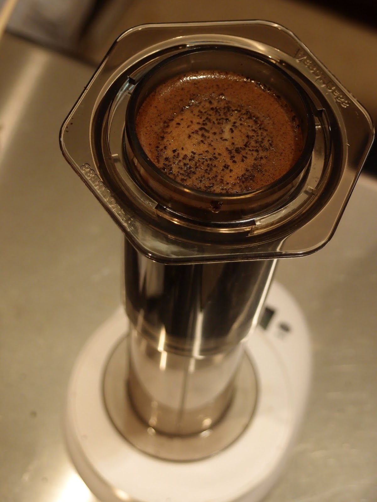 何飲みたい?って聞かれたので、流行りのエアロプレスでガツン!!って効く奴って答えるとビターな豆で、淹れてくれました。