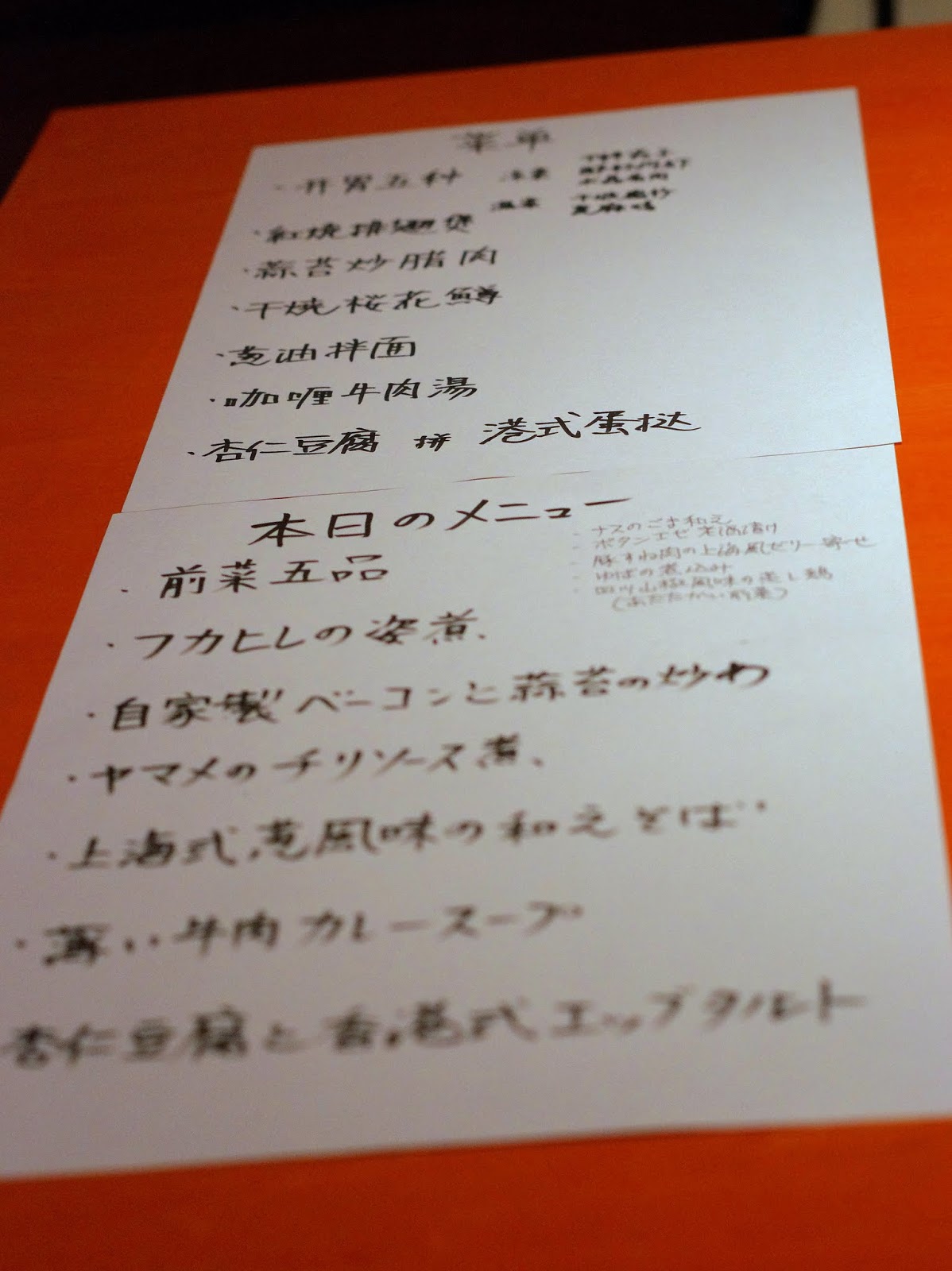 上が中国語で書かれたメニュー表 下が日本語で書かれたメニュー表 |
