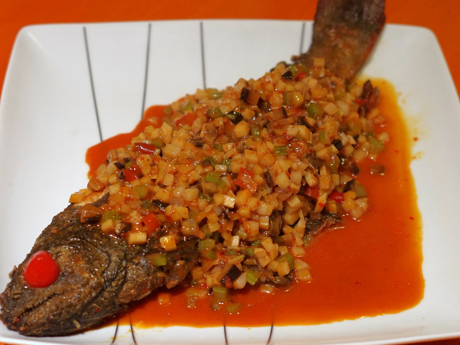 ヤマメのチリソース煮 赤い目は、カズさん用(笑) 物を知らないだけなんですが、こげんでかかヤマメ初めて見たバイ!! |