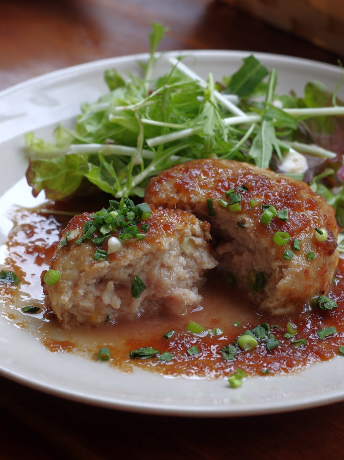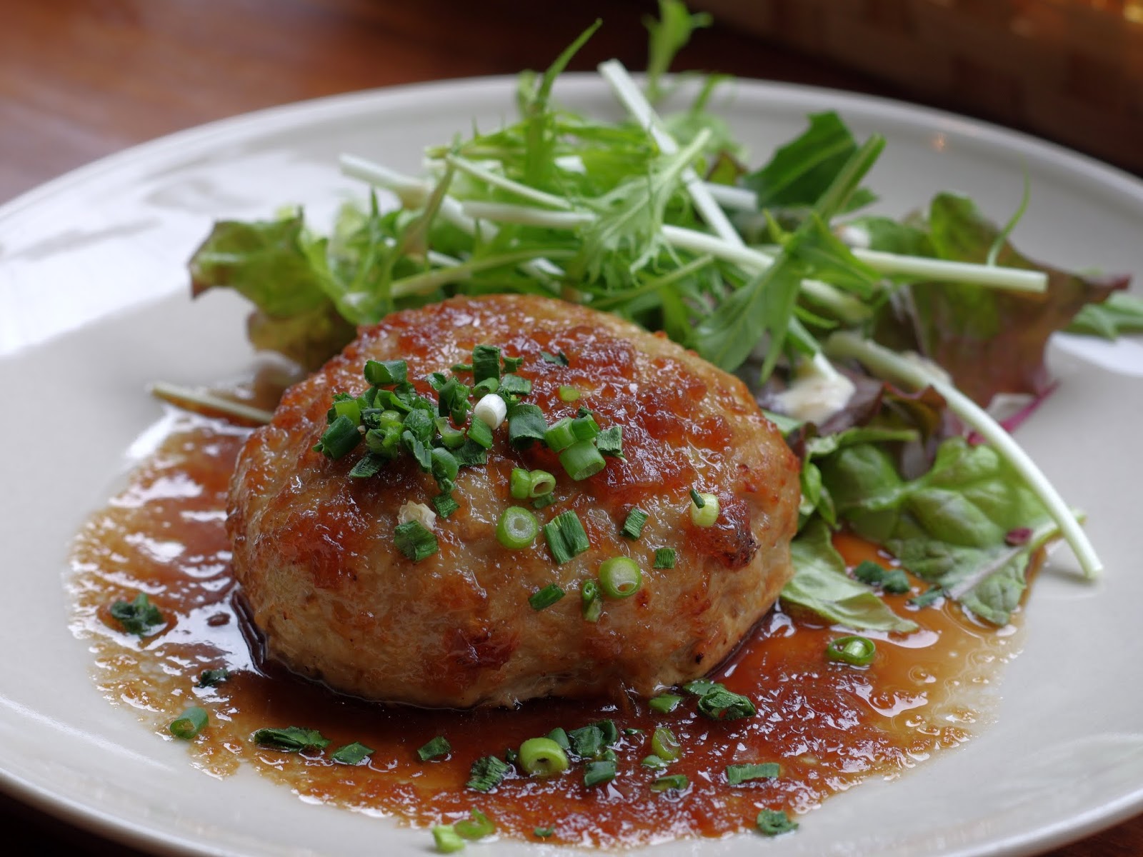 トップの写真は、熟成豚のハンバーグジャポネソースです。