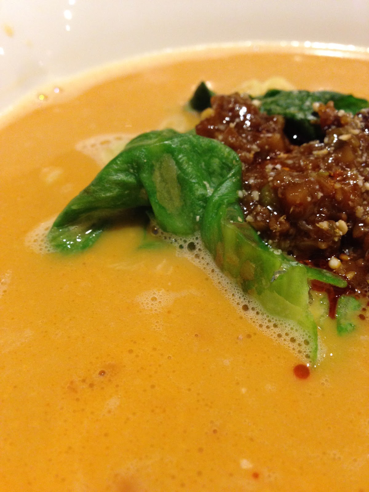 そして、スープですがかなりクリーミー、上海の担々麺が海鮮系の味にクリーミーな物が多い気がしますが、ここの担々麺は今まで食べた中でも上位のクリーミーさ