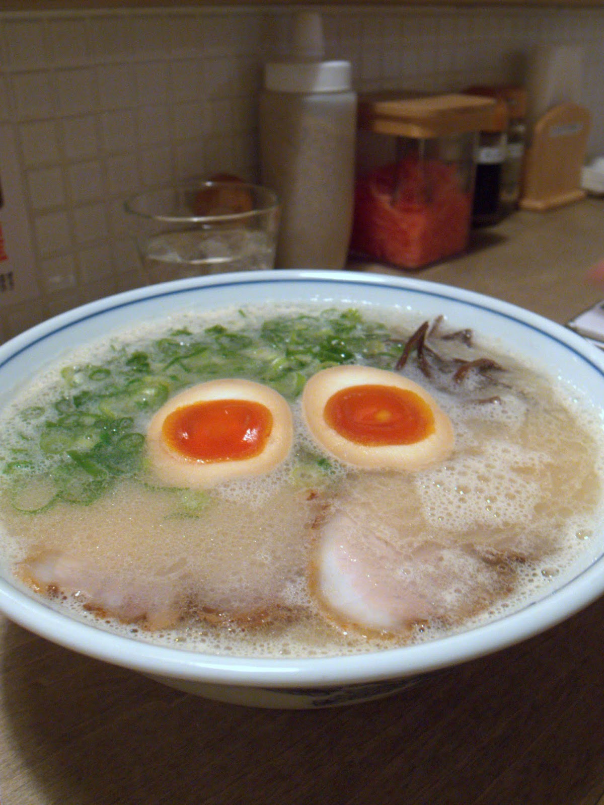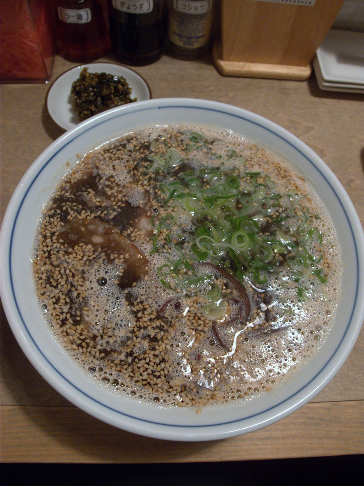 トップ写真はトンコツ、オーソドックスな博多ラーメンで非常に食べやすい優しいラーメンです。見た目と違ってあっさり味に近い豚骨、麺は細いストレートです。