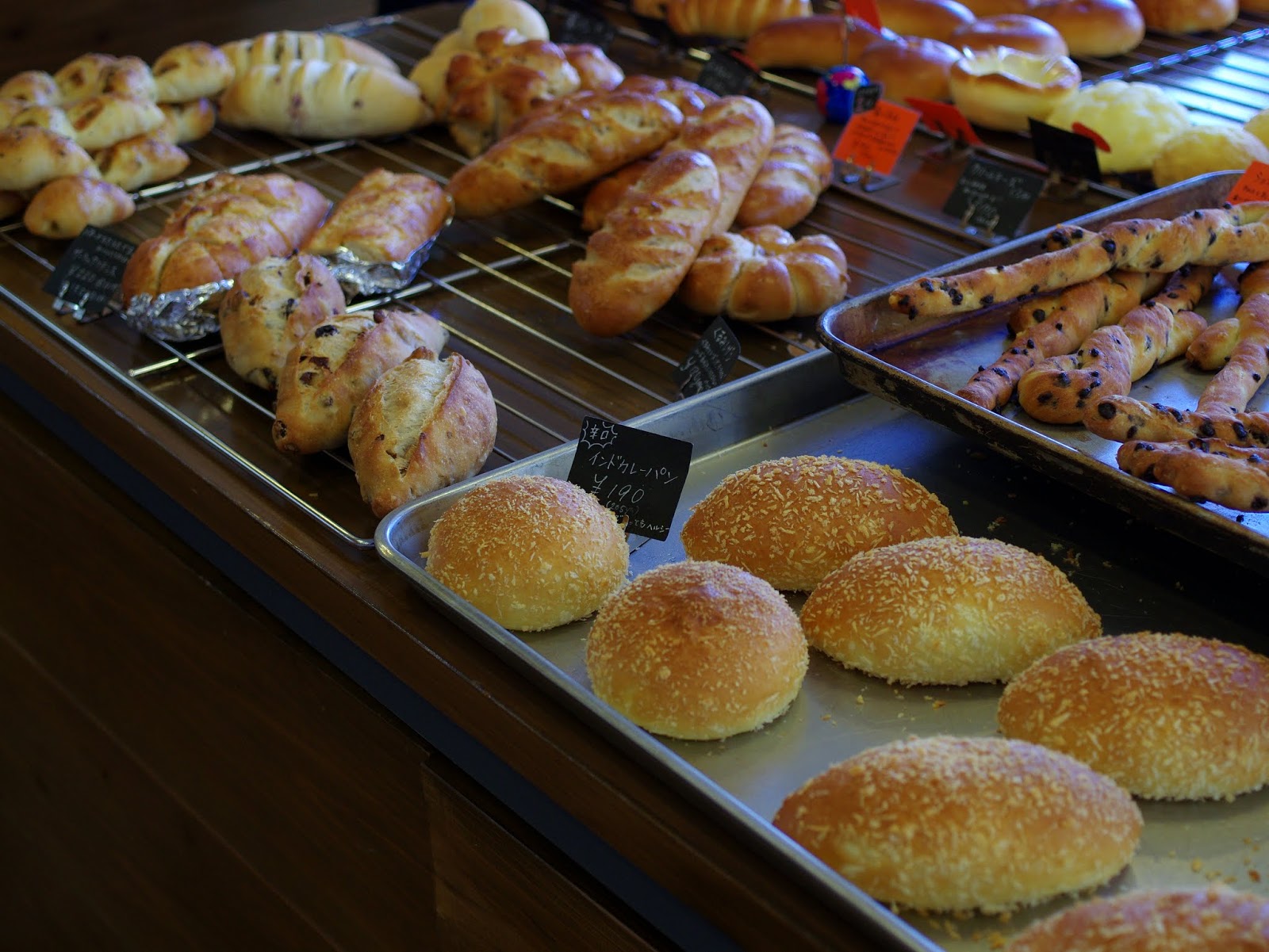 豊富な種類のパンと、独自開発した調理パンや菓子パンが売りで、他のパン屋ではあまり見かけないパンも多い。朝は7時30分オープンだけどオープン準備に入るのは4時とか5時、パン屋さんの宿命なんだろうけど、翌日も熱が出てるのに明け方前から出てきてせっせとパンを創ってたようです。(おらには無理な仕事だw
