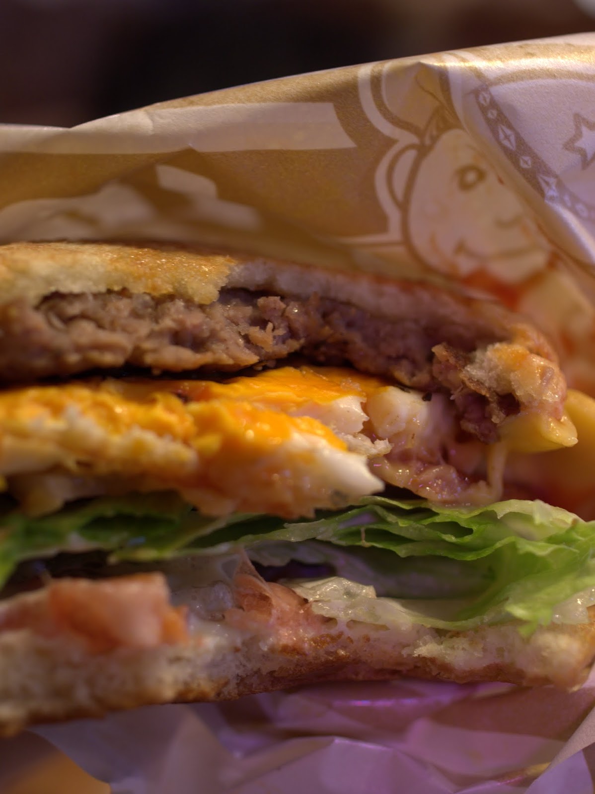 スペシャルバーガーと名称が入っている「ログキット」のハンバーガーは、表面はカリカリで中はふわっとしたバンズに、ジューシーなパティ、その間にシャキシャキなレタスと、さっぱりさせてくれるトマト。さらに濃厚さを出すためのタマゴとチーズが入っています。他のハンバーガーと大きな違いはありませんが、やっぱり日本初のハンバーガーと言われる佐世保バーガーだけに、その旨さからも歴史を感じます(笑)