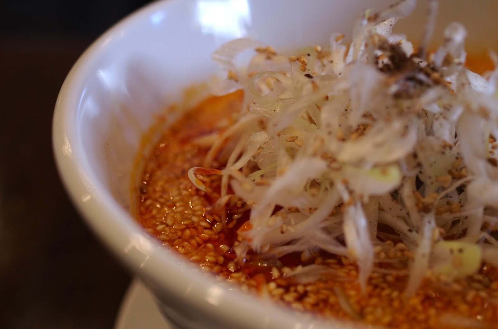 こちらは白胡麻担担麺、白胡麻は担担麺の赤に染まって白色じゃなくなってますが、白ネギの白さが際立ってます。こちらも同様に辛さは、あ、辛いねって言えるぐらいの辛さでした。ちなみに、この白胡麻担担麺は週替りメニューに書かれていたので、普段は無い可能性もあります。夜メニューには載ってるので、どうしても食べたい方は夜行くのをおすすめします。
