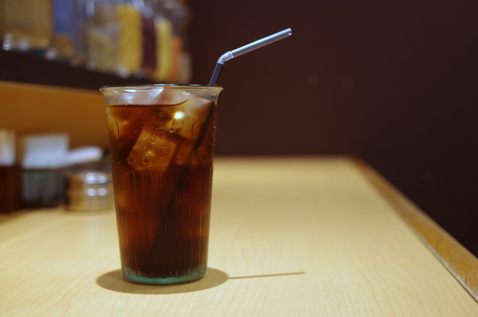 最後はアイス珈琲を頂きます。微妙にグラスが斜めに傾いてますよね。じっくり見ると違和感感じるでしょ。撮る時はまっすぐにカメラを構えましょうね(笑)