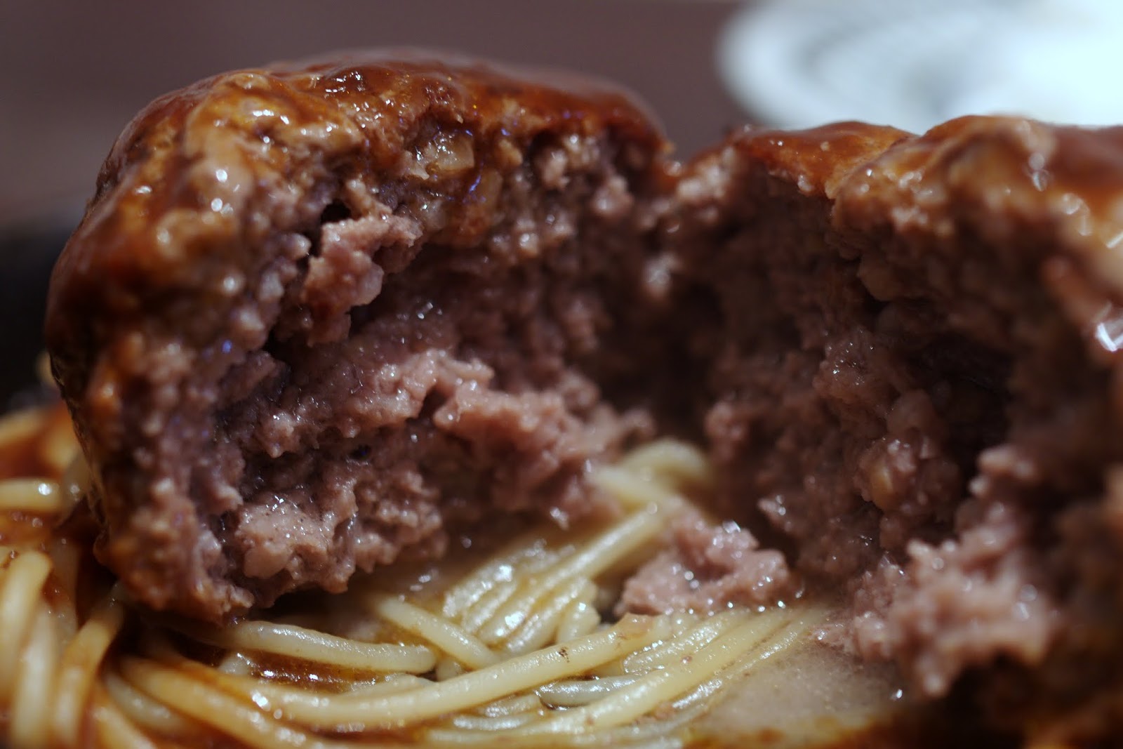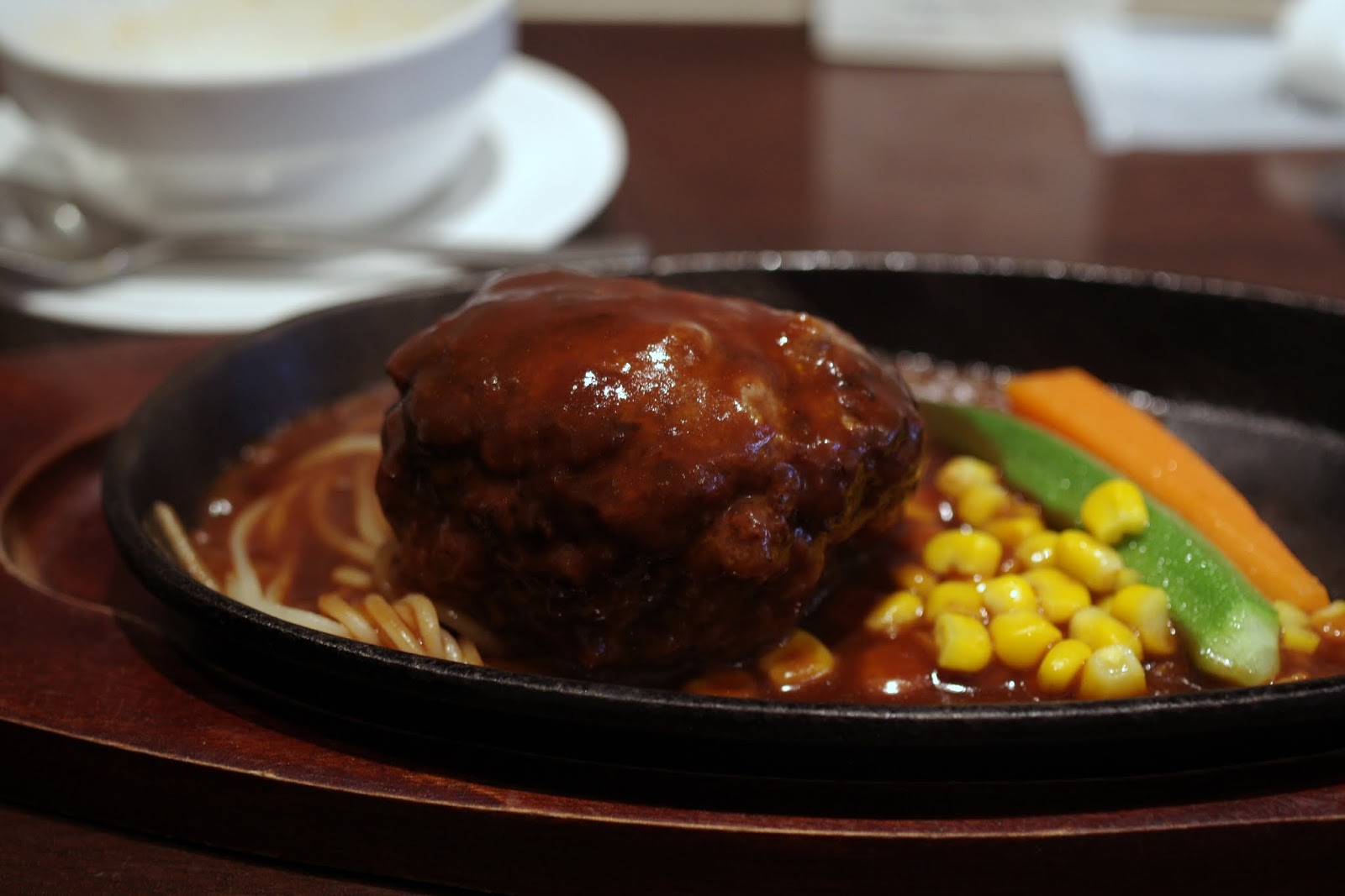 デミグラスソースのハンバーグ、デミグラスソースが濃厚でハンバーグの肉肉しさを抑える上品な仕上がりになってます。個人的には肉々しさを引き出すジャポネソースが好きなんだが、これはこれで抜群に美味かった。