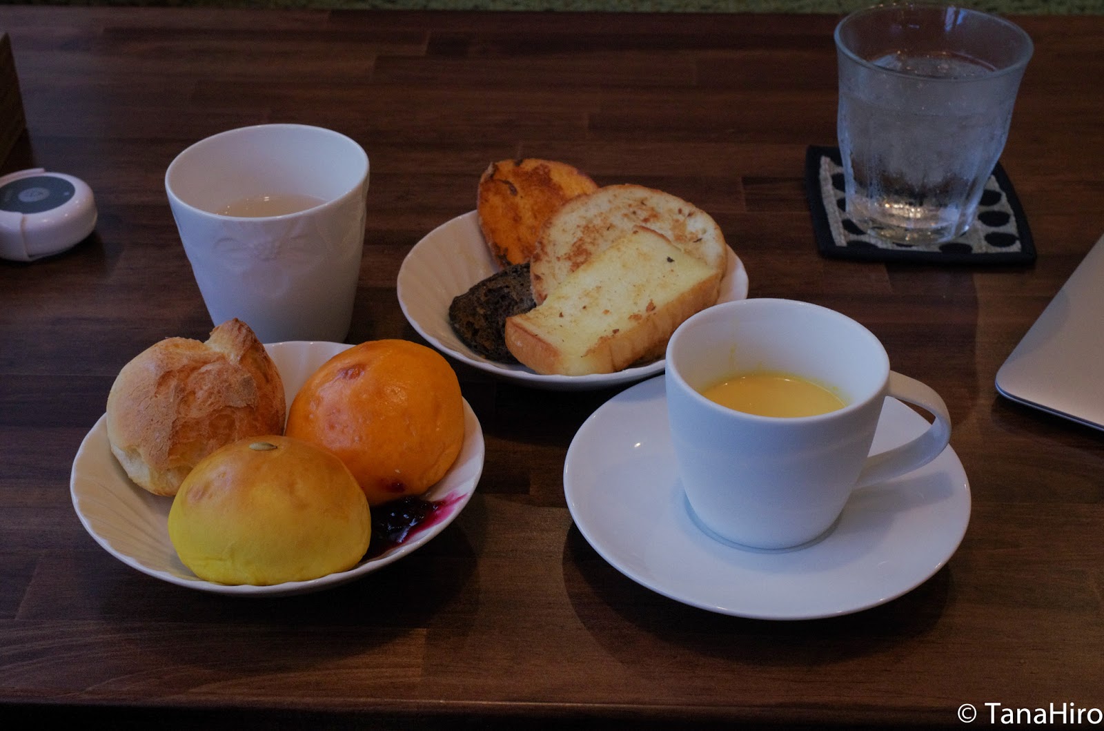 モーニングの内容は、スープとパン(3種類)とフレンチトーストビュッフェとドリンクがセットになっています。それにサラダやスクランブルエッグなど追加するセットがあります。
