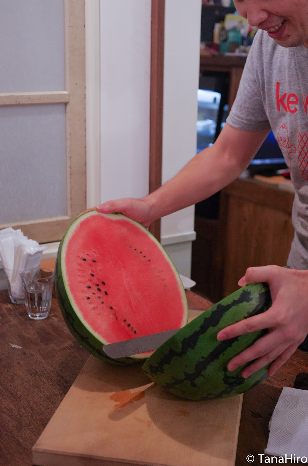そして、食べ終えてしばらくしてると、ある方々がでっかいスイカを持ってきた。それはそれは見事な大きさ、いただくと甘く甘く常温だったけど久しぶりに旨いスイカを食べた〜と思った。