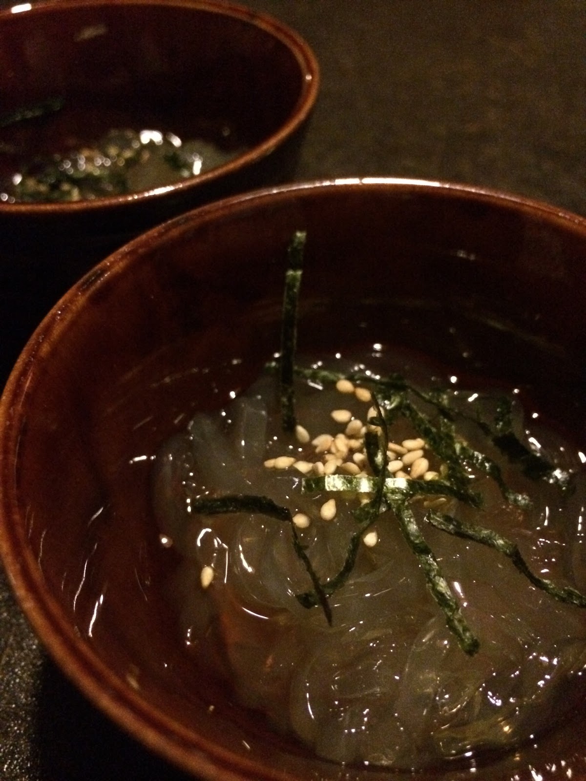 ↓付きだしのトコロテン、トコロテン自体は味しないけど旨いねw