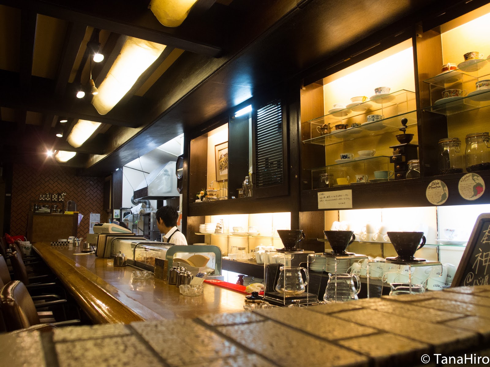店内はなが〜いカウンターと、テーブルが5〜6セットあります。いかにも喫茶店って感じの店で、静かに珈琲を片手に読書でも楽しめるような空間です。