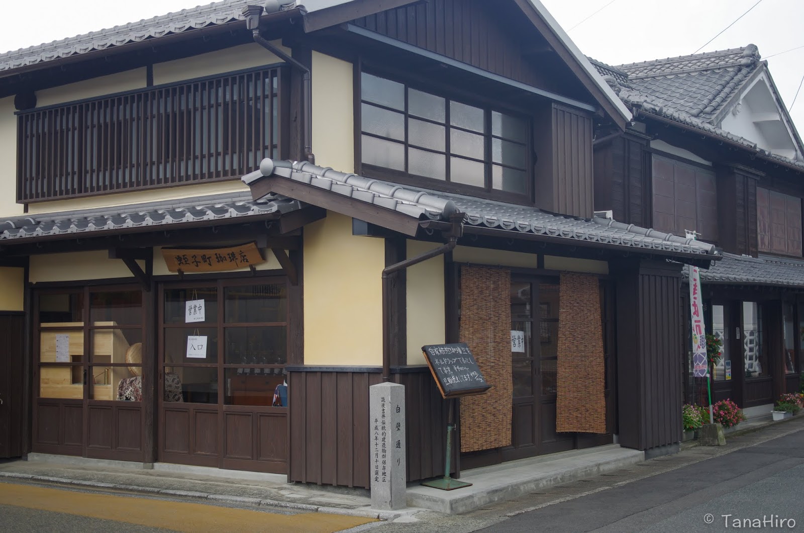 白壁の街中にある「蛭子町珈琲」、建物は木造で白壁ではありませんが街にあった珈琲店です。店内も木を使った造りで建物は新しいけど古く懐かしい感じです。