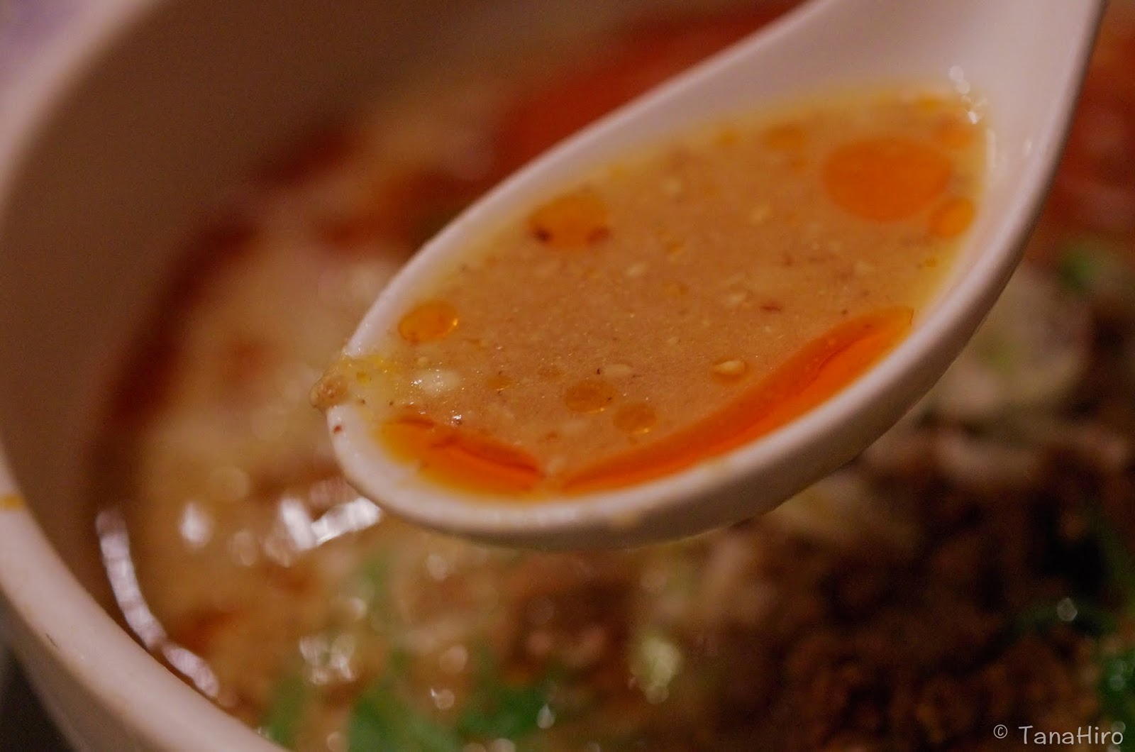 麺は特別な麺って感じはありませんが、普通に美味しい麺です。スープは胡麻ペーストベースのスープにラー油がたっぷり入っています。