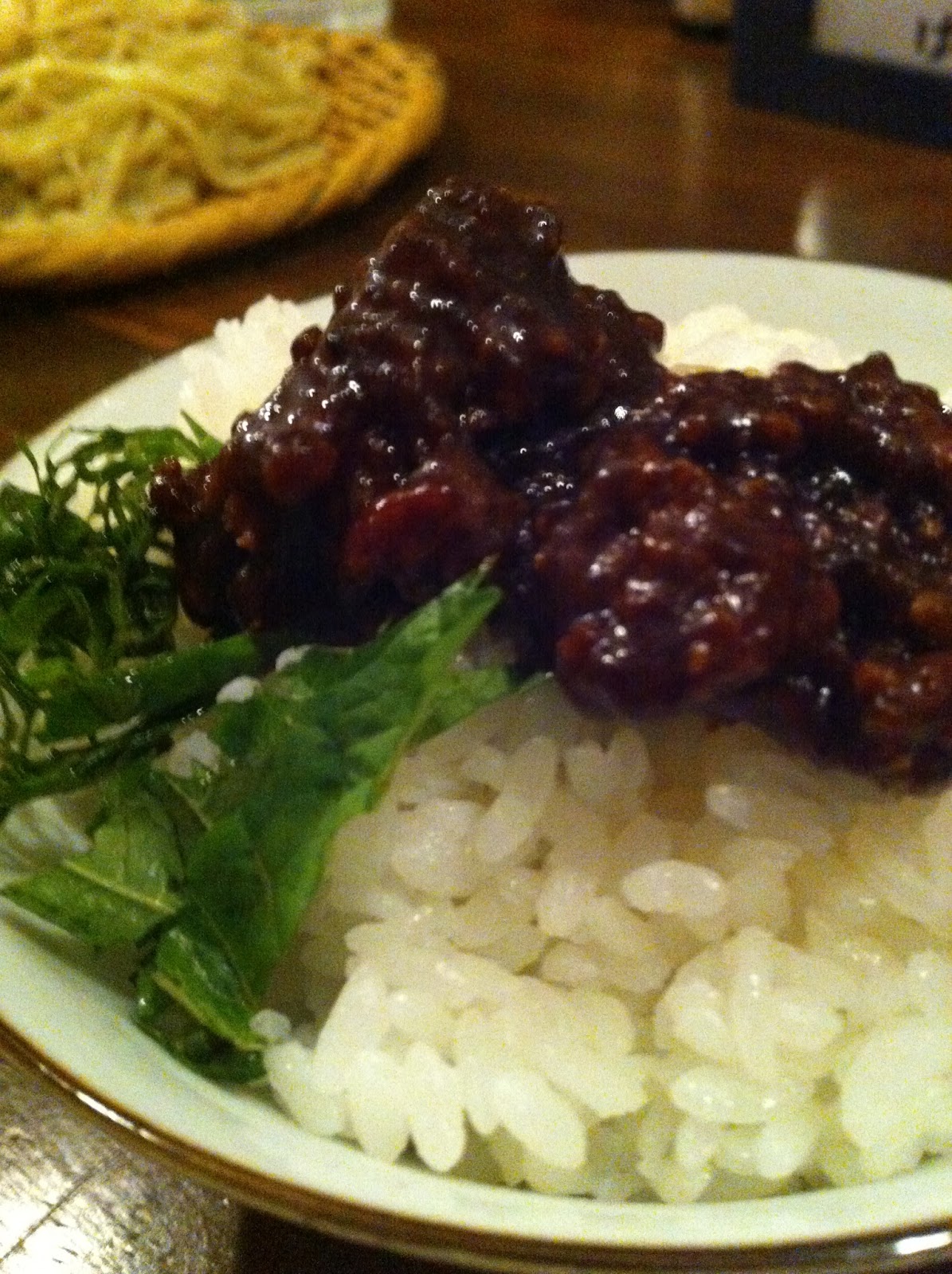 もちろん注文したのは四川風汁なし担担麺、セットにすると餃子とおにぎりが付いてきます。食べてびっくり、中華そば屋が居酒屋になった店(←失礼だなw)が出す味じゃありません。花椒が効いてて痺れる旨さ。辛いだけじゃなく美味しい中華屋さんで出てくるような旨さもあった。いや〜驚いた(←やっぱり失礼だw)