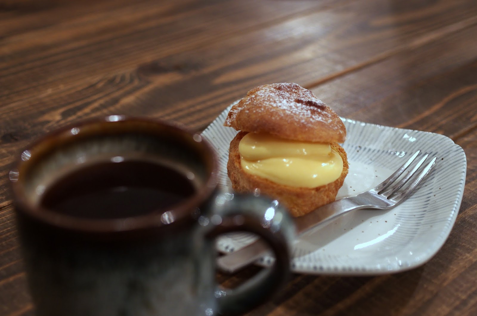 ちなみに、家鴨軒ではシュークリームやコーヒーの置き方も考えてお客様に出すようにしているようです。食べやすいように、見栄え良くって感じで。
