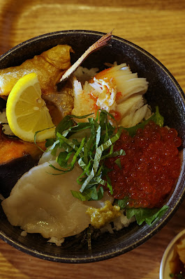 帆立は注文が入って捌き新鮮、カニの身も沢山入ってるし、いくらもたっぷり、鮭カマの塩焼きは少々塩が効いてるけど、鮭の旨さが凝縮しているカマでバリ旨。
