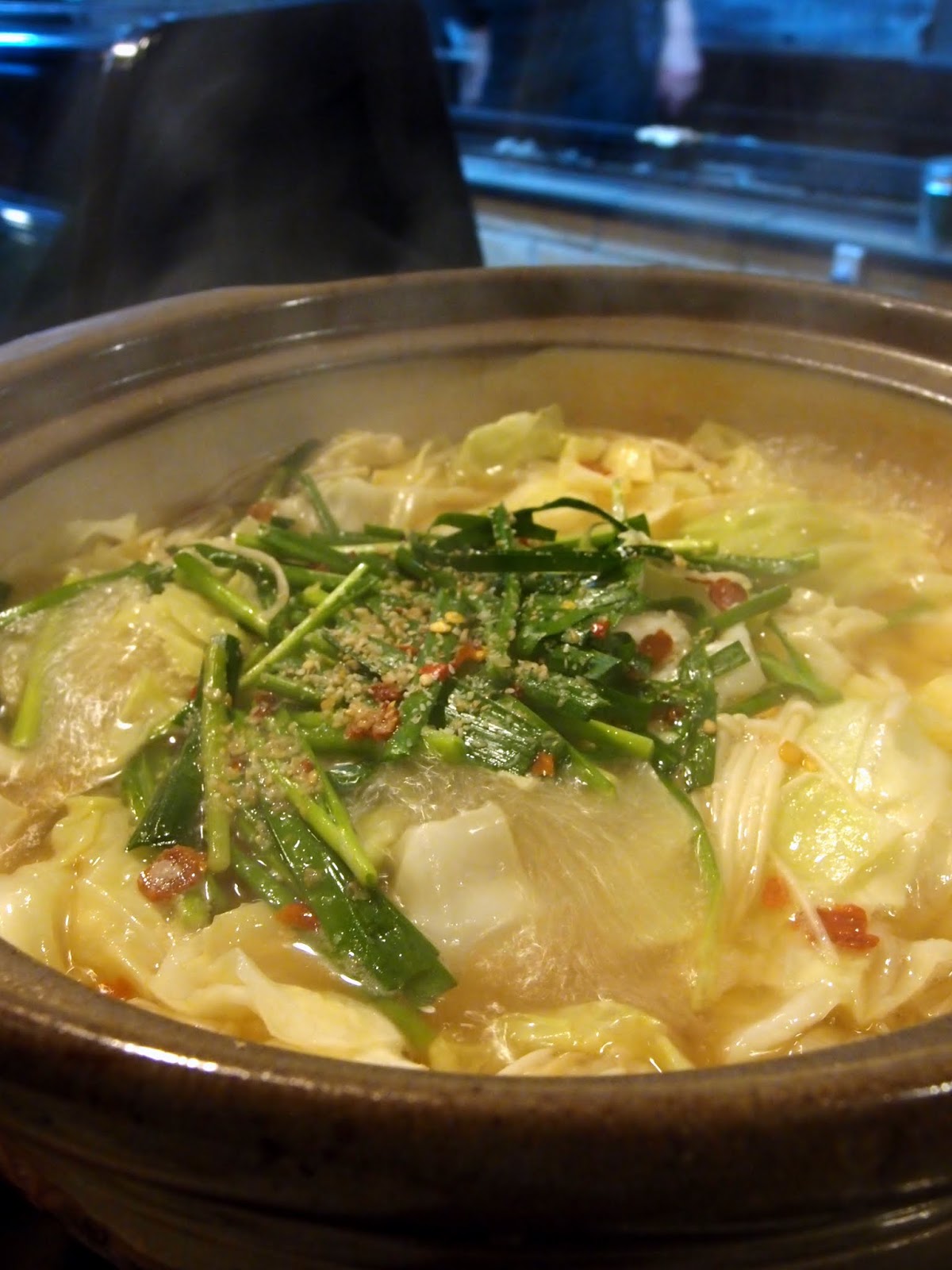 さて今回のメインは、もつ鍋。ここのもつ鍋は、塩もつ鍋でオプションの追加料金が発生しますが厚揚げを入れるのが特徴のようです。もつ独特の旨い脂とさっぱり塩味の鍋汁が染み込んだ、ほくほくの厚揚げ。もつ自体は小ぶりなもつですが、さすが卸業をやっているお店、一人前で850円の価格ながらもつの量はたっぷり入っています。(某有名もつ鍋屋に行くと美味しいんだけどもつの量が少ないんだよね~)