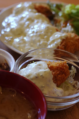 焼き牡蠣はありませんが、「かえる食堂 蓮」にも広島産のカキフライ定食が出てきました。(ちょっと前からですが...)