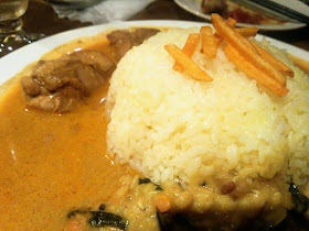 ここのカレーはココナッツミルクたっぷりで、クリーミーだけど辛い。