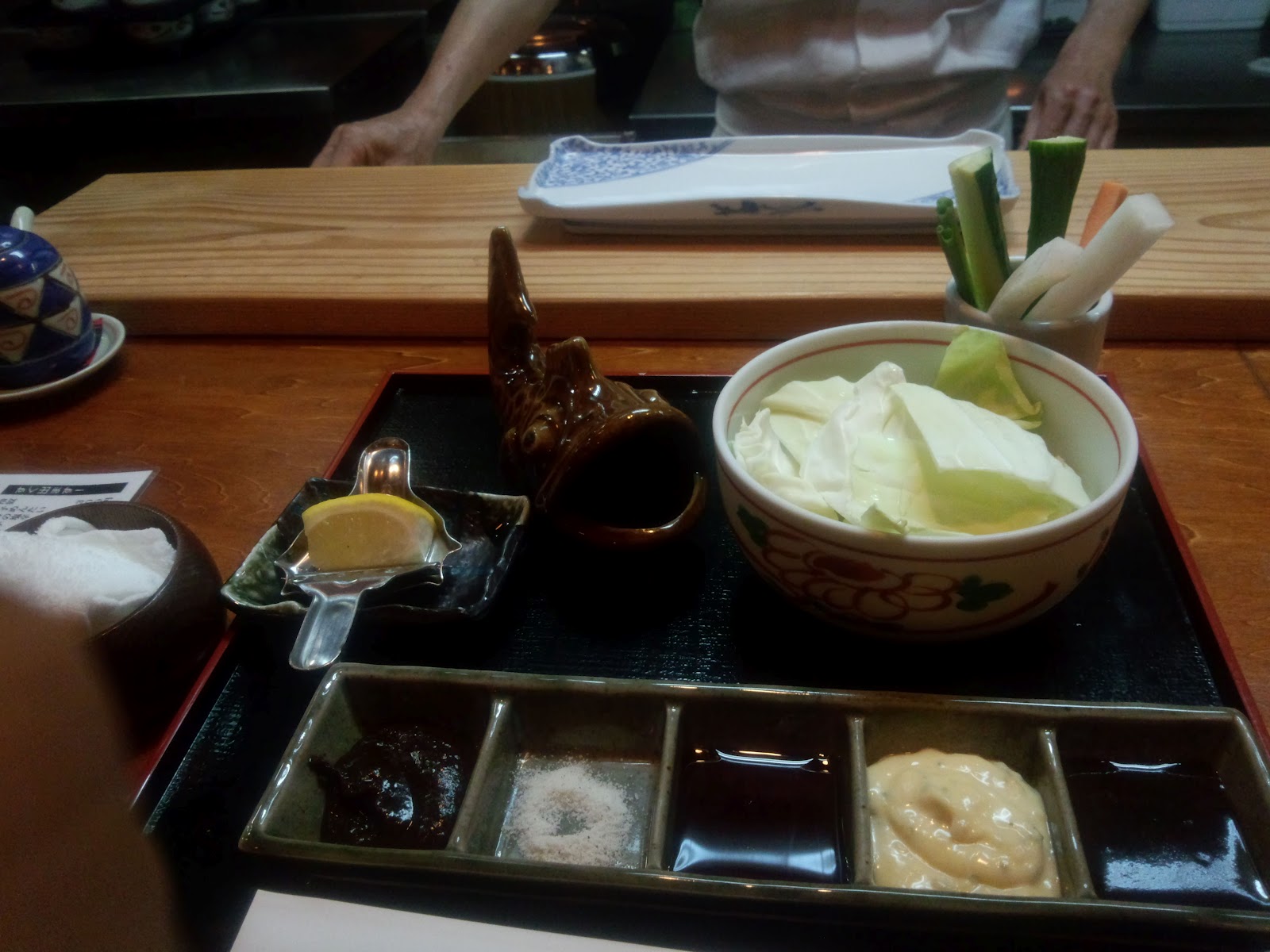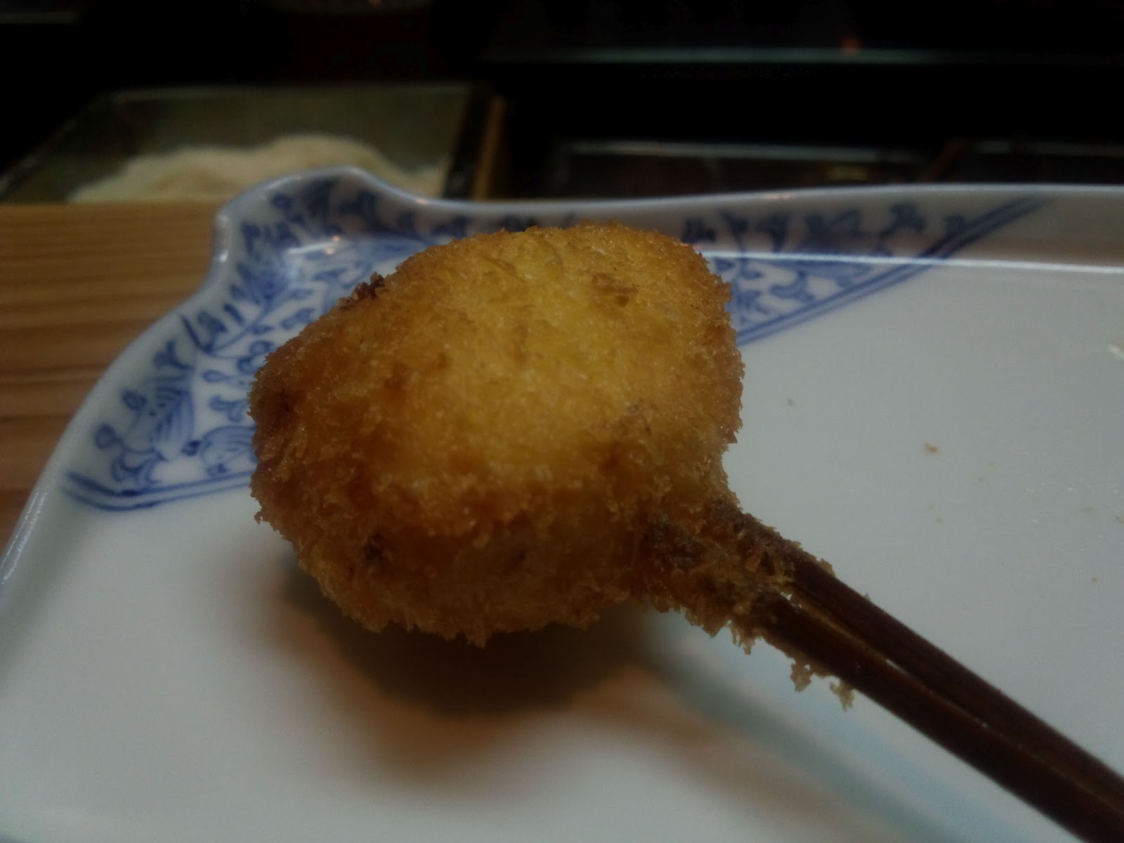 大阪の串かつ屋と違って、店の雰囲気や出す料理の内容まで、日本料理を意識した店でした。突き出しが300円もするんですけど、300円取られても「まっイイか」って思える味と量のモノが出てきました。