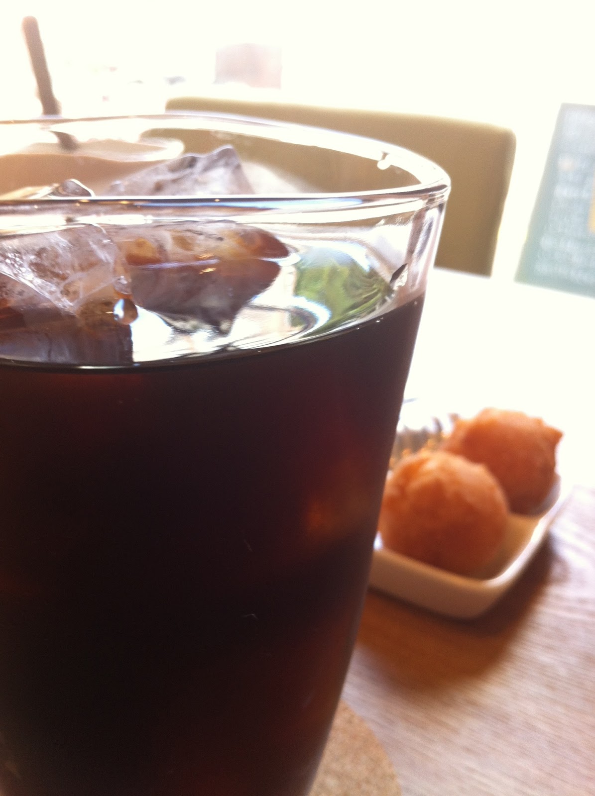 知人が行ってた店で、旨そうだったので行ってきた。ランチメニューは、1種類(日曜日だったから?)で内容は、前菜3品、スープとオニギリ2つ、サラダと冷たいパスタに、串揚げが6本、アフターのコーヒーとデザート(サータアンダギー)です。