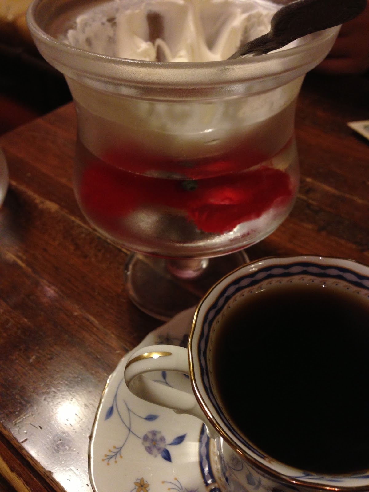 サイフォンで淹れるからか、店内はコーヒーの香りで満ちていてとても心地いい(笑) ソファーや椅子なんかも継ぎ接ぎだらけだけど、そこも味がある(笑) 白髪のおじいさんがマスターで、にっこり微笑みながら持ってきたコーヒーは、優しい味がしました(^^