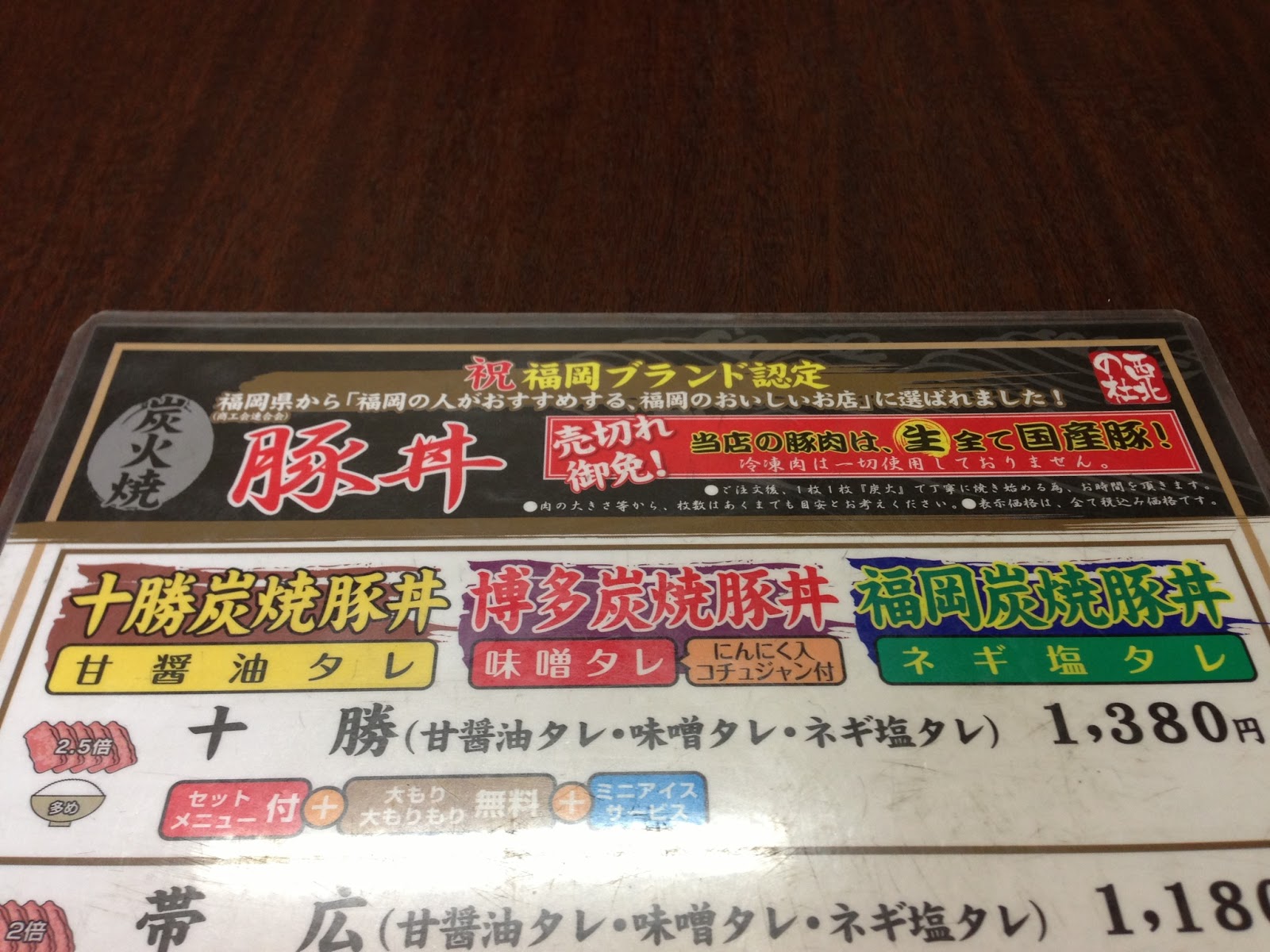 このお店、夜は焼肉屋でランチに豚丼を出しています。(夜も豚丼はあるのか未確認)、ちょっと前に北海道十勝の豚丼が少々流行りまして、そのときに福岡で見つけたお店で、なんでも北海道のなんちゃら協会か組合の認定を受けているそうです。それが3年くらい前のこと。