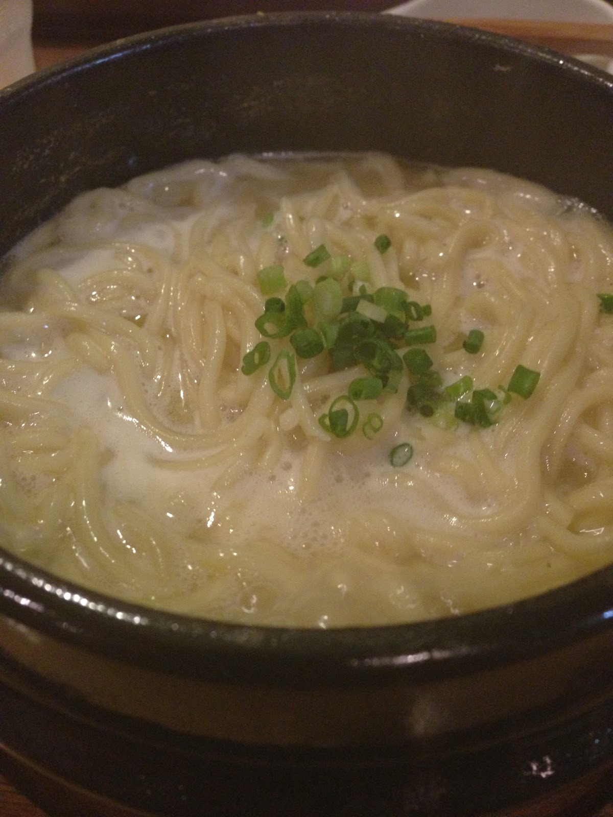 最後に〆として・・・、定食に〆があるのか?と(笑)、ちゃんぽん麺か雑炊用のご飯が用意してあります。せっかくなんでちゃんぽん麺を戴きました。鍋を一度下げてちゃんぽん麺を投入して、温めて出てきます。熱々のちゃんぽんがスープと絡んで旨いのなんのって。