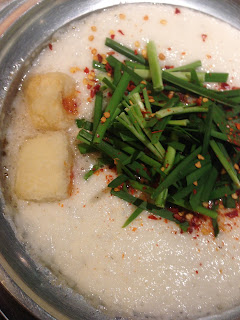 豆腐が普通の豆腐では無く、揚げ豆腐になってます。他にも揚げ豆腐を使っている店はあるのですが、ここの揚げ豆腐は揚げたてで出てきます。これがなかなか豆腐に味は染みないのが欠点かもしれませんが、衣に味が染み揚げ出し豆腐のような感じになって、サクサク感も残って食感、あじ共に良いじゃないですか。1人1個しか付いてこないので、追加すると中に明太が入った揚げ豆腐が出てきます。これはこれで単体で食べるには旨いけど、鍋に入れるには明太は無くてもイイかもw