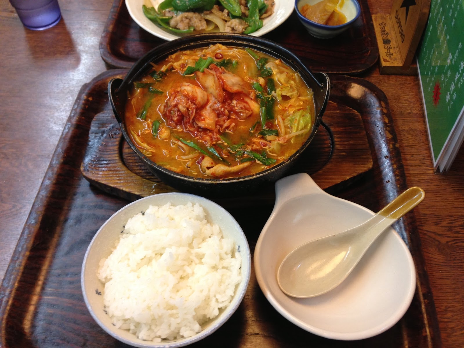 その中で今回は、黒豚肉とピーマンの炒め物定食と、豚キムチ鍋を戴きました。写真を見てわかるか微妙ですが、ご飯の量もそこそこ多いけど、おかずがドカ盛りです(笑) ご飯大盛りは別料金なのに、おかずはデフォルトで他の店よりも大盛り(笑) 味付けはちょっぴり濃い目で、よくご飯が進みます。