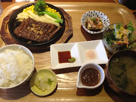 最初は、塩やわさびと醤油で戴きます。ご飯を半分くらい食べた頃に、サラダと肉を乗せて特性ソースをかけて、ステーキ丼にします。これがまた旨い!!このソースと肉汁がご飯に混ざり、気がつくとご飯茶碗を持って掻きこんでいます。ペロッとなくなるよw