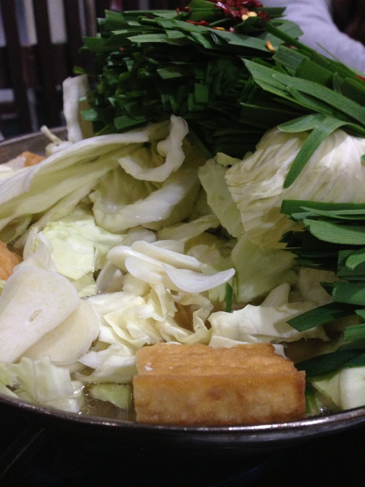 さて今回のメインは、もつ鍋。ここのもつ鍋は、塩もつ鍋でオプションの追加料金が発生しますが厚揚げを入れるのが特徴のようです。もつ独特の旨い脂とさっぱり塩味の鍋汁が染み込んだ、ほくほくの厚揚げ。もつ自体は小ぶりなもつですが、さすが卸業をやっているお店、一人前で850円の価格ながらもつの量はたっぷり入っています。(某有名もつ鍋屋に行くと美味しいんだけどもつの量が少ないんだよね~)