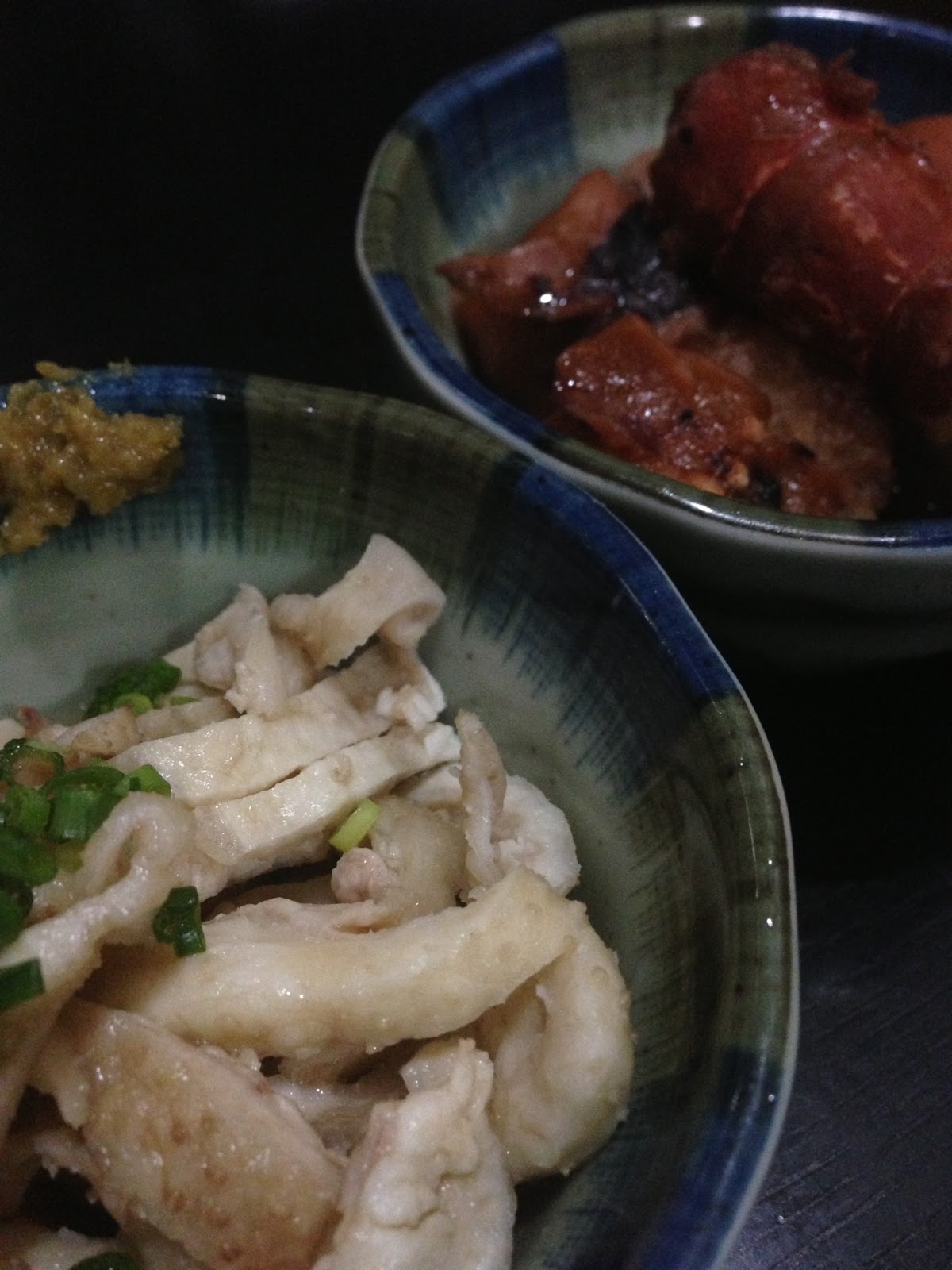 店構えは昭和の居酒屋さんという感じで、扉を開けると目の前にカウンター席(10席?)があり、狭い通路の先には、テーブル席が2つほど。さらに奥、普通の店ならスタッフオンリーとなりそうなところの奥に、個室があるようです。わりと狭い店でした。カウンターもテーブル席も大柄の男なら肩が触れ合いそうな狭さです。
