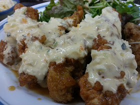 チキン南蛮の端っこの方に写っているのは、ゲソのフライ。揚げ物の付け合せが揚げ物w 「めし処 一膳や」らしいw
